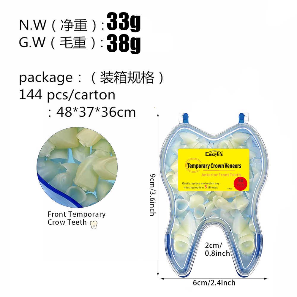 Couronne dentaire temporaire, faux dents, matériau de réparation, avant et arrière, offrant de l'aide à la réparation des dents manquantes ou cassées