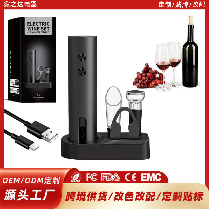 Ouvre-bouteille électrique Temu, type C rechargeable, ensemble d'ouvre-bouteilles automatiques pour décanteur à vin