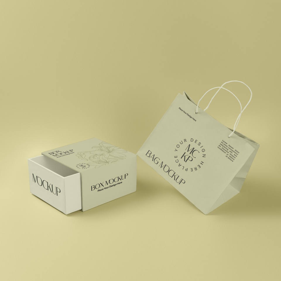 Boîte cadeau vert tendre, emballage en carton imprimé, style tiroir, sac en papier