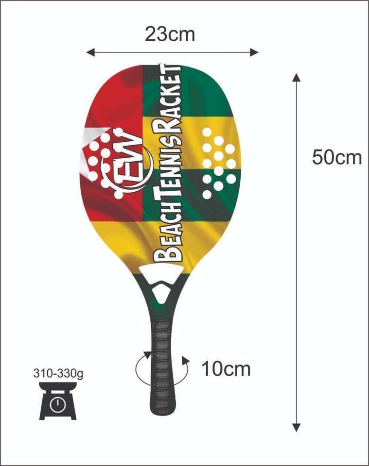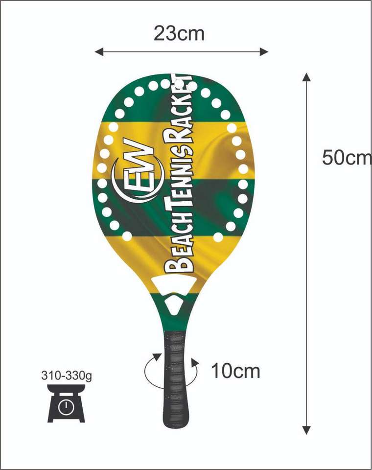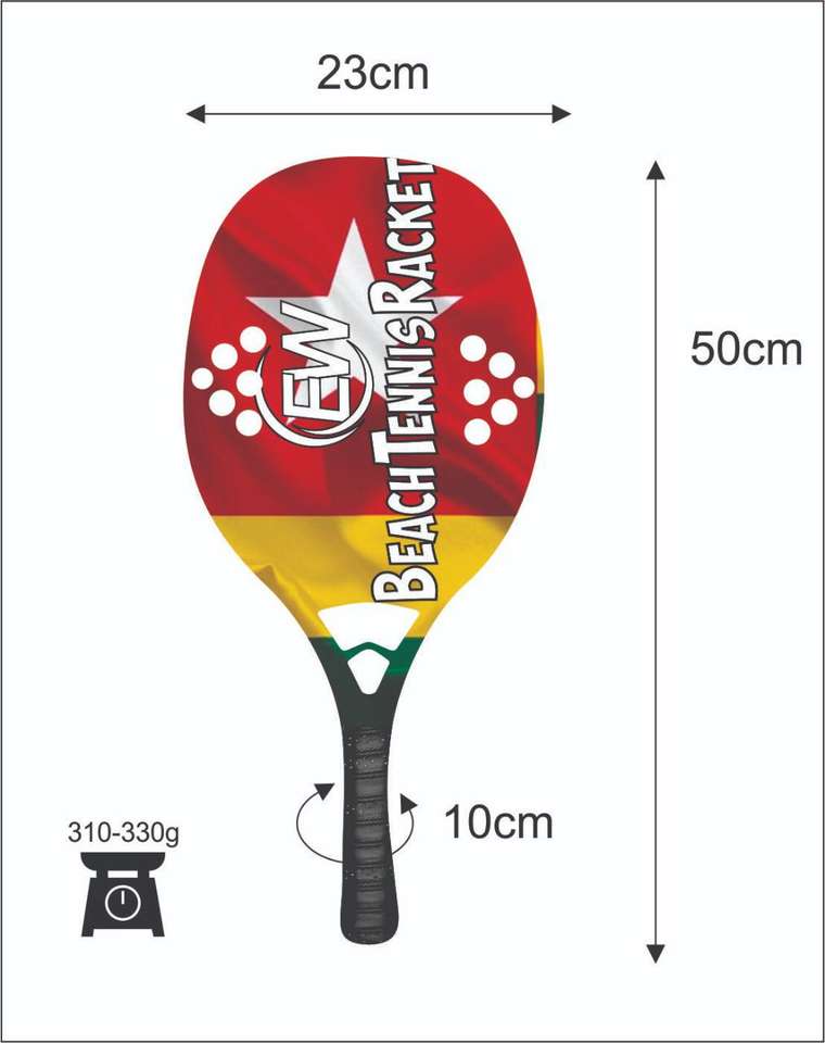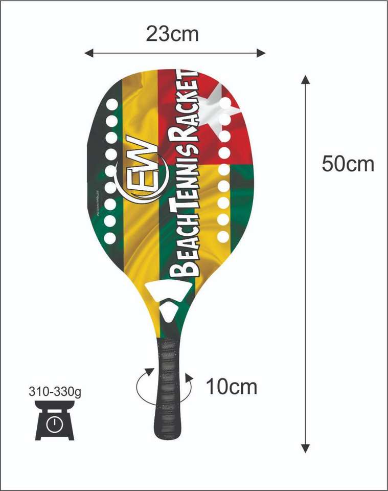 Raquettes de tennis de plage, face de 20 mm, poids de 320-340 g, longueur de 50 cm, poignée en fibre de carbone, filet en fibre de verre