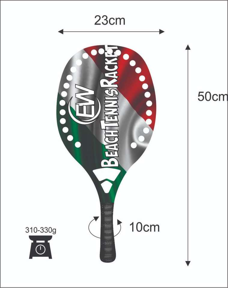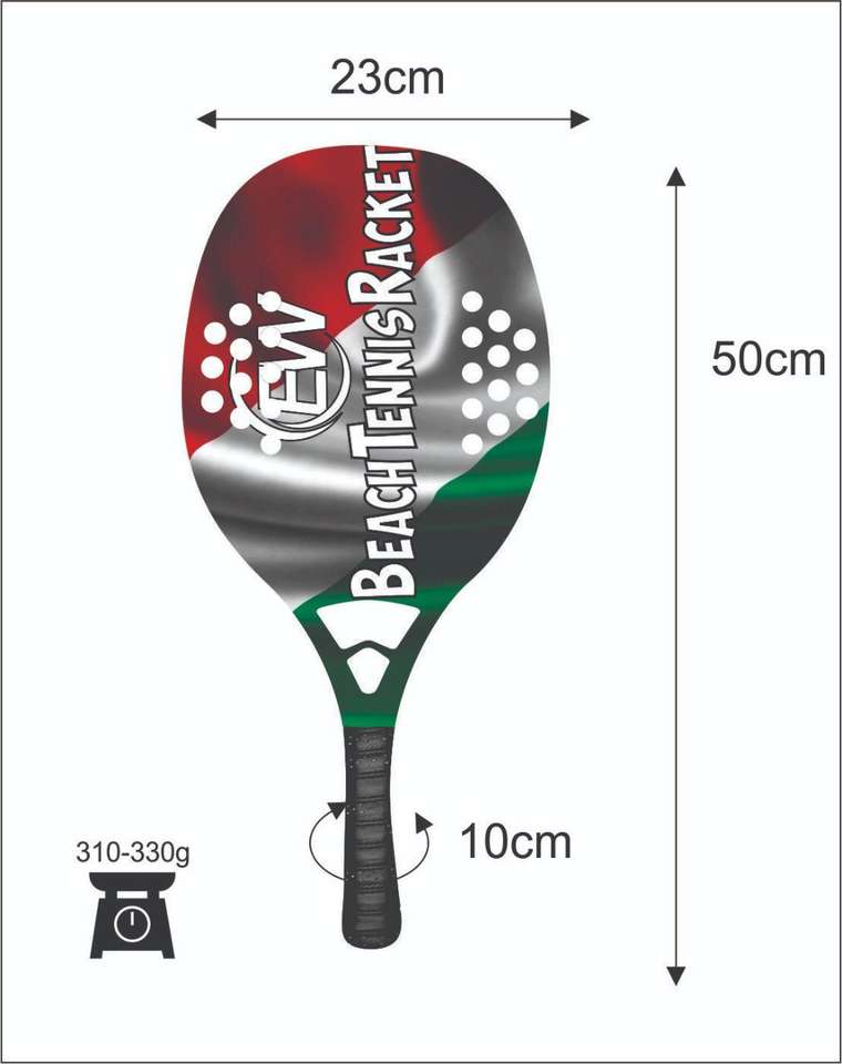 Raquettes de tennis de plage sur mesure en carbone et fibre de verre, poignée 20 mm, poids 320-340 g, longueur 50 cm