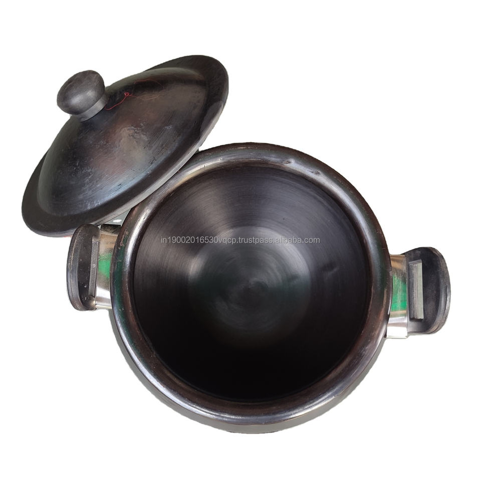 Marmite en terre cuite noire de 2 litres avec couvercle pour cuisinière à gaz micro-ondes marmite en argile sûre Biryani