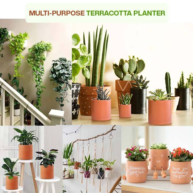 Élégant pot de fleurs et jardinière d'intérieur/extérieur en terre cuite de 8.5 pouces avec plateau inférieur pour plantes