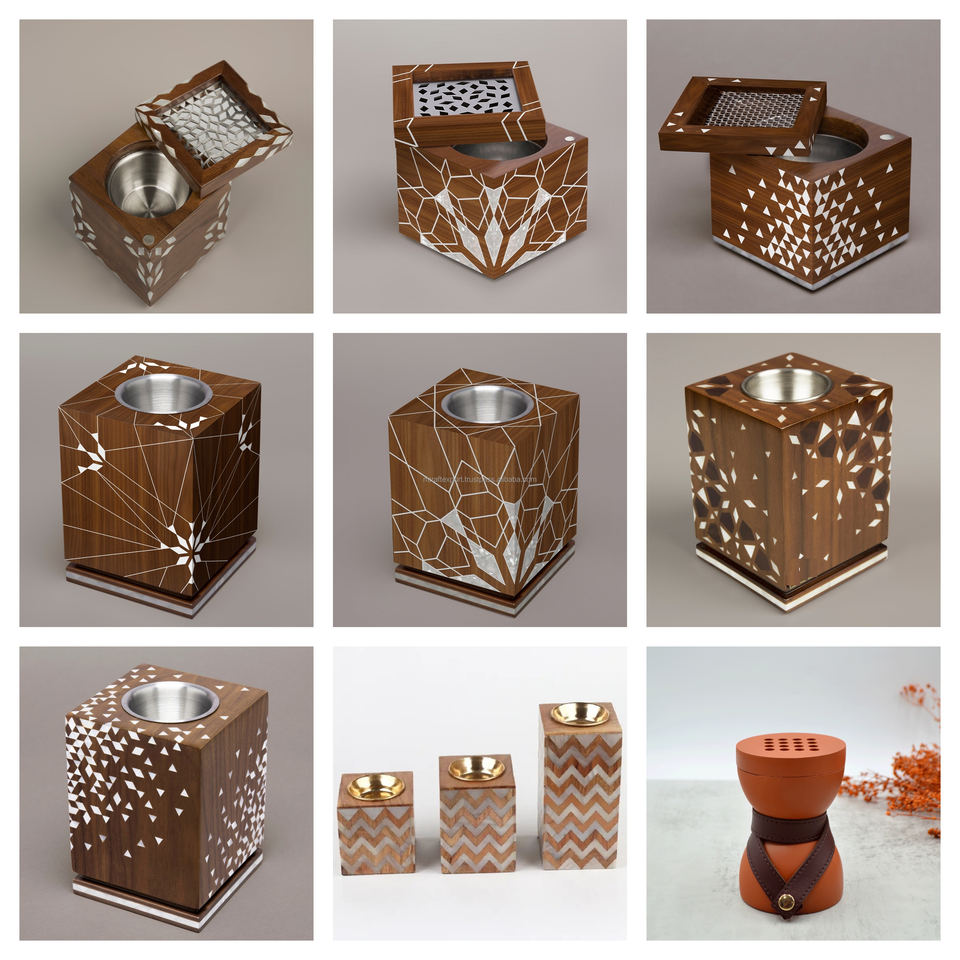 Eco-Friendly Terrazo Bakhoor Mubkhar Evaporator Medkhan Incense Burner with Bone Inlay Material for Home and Wedding Events