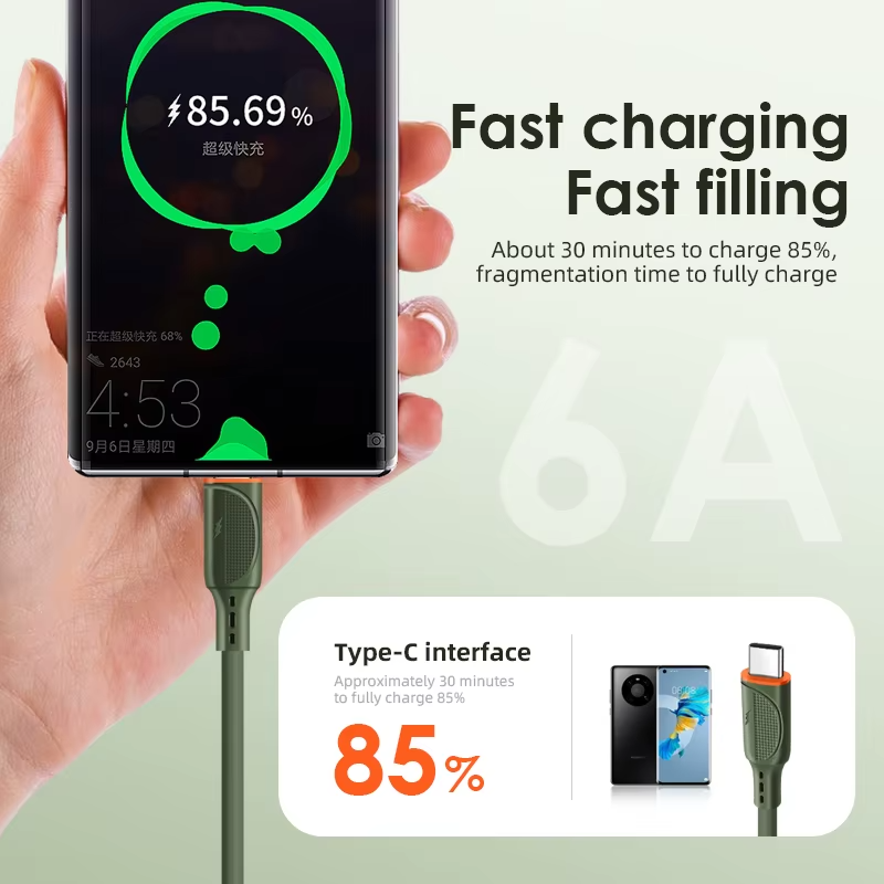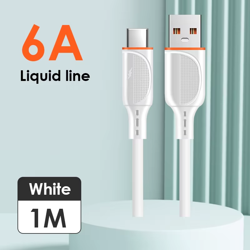 Câble de données USB-C vers Type-C à charge rapide, en silicone véritable, avec noyau en cuivre pur de qualité supérieure, 6A, moule D