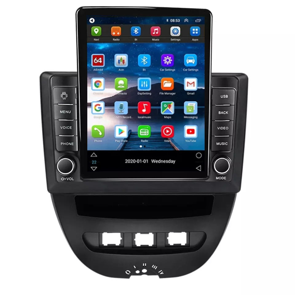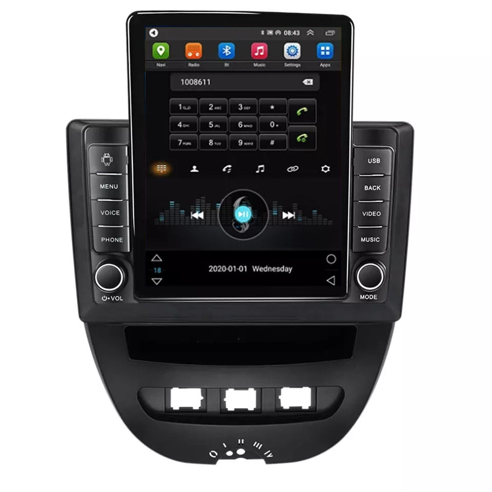 Tesla Android 10 IPS 2.5D voiture lecteur DVD pour Peugeot 107 citroën C1 Toyota Aygo 2005 - 2014 BT GPS Navigation SWC Carplay