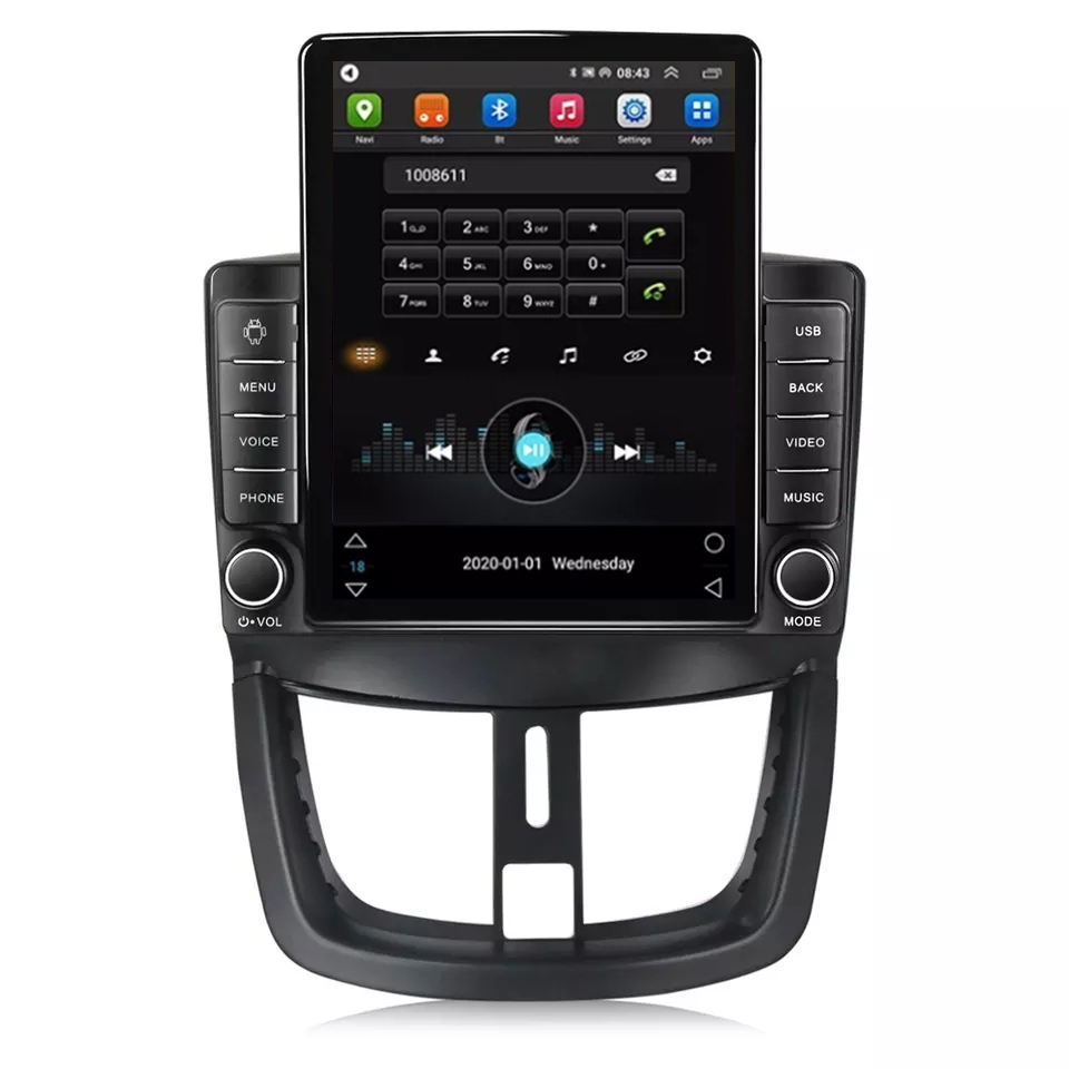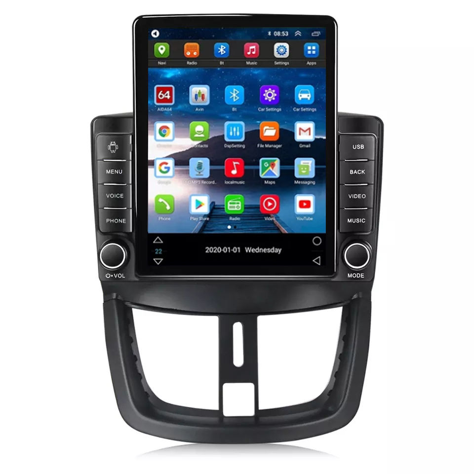 Système Multimédia Voiture Tesla Android 10 IPS DSP 4+64Go pour Peugeot 207 2006-2015 avec Lecteur Android, Carplay, RDS et Navigation