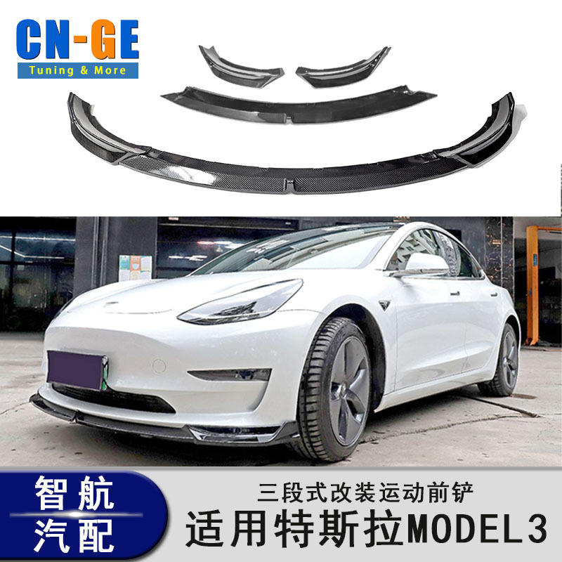 Lèvre de pare-chocs avant Tesla Model 3 en fibre de carbone noir brillant 2016-2023 Kit carrosserie sport