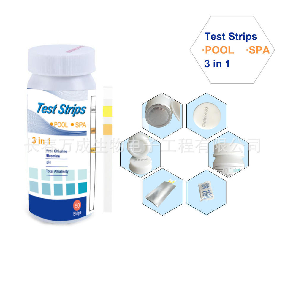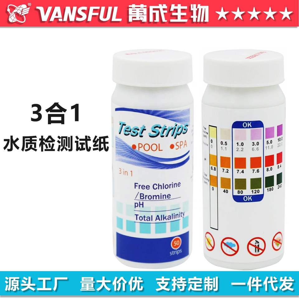 Bandelettes de test 3 en 1 pour piscine et spa, chlore, pH, alcalinité totale, 50 bandelettes, vérificateur de qualité de l'eau