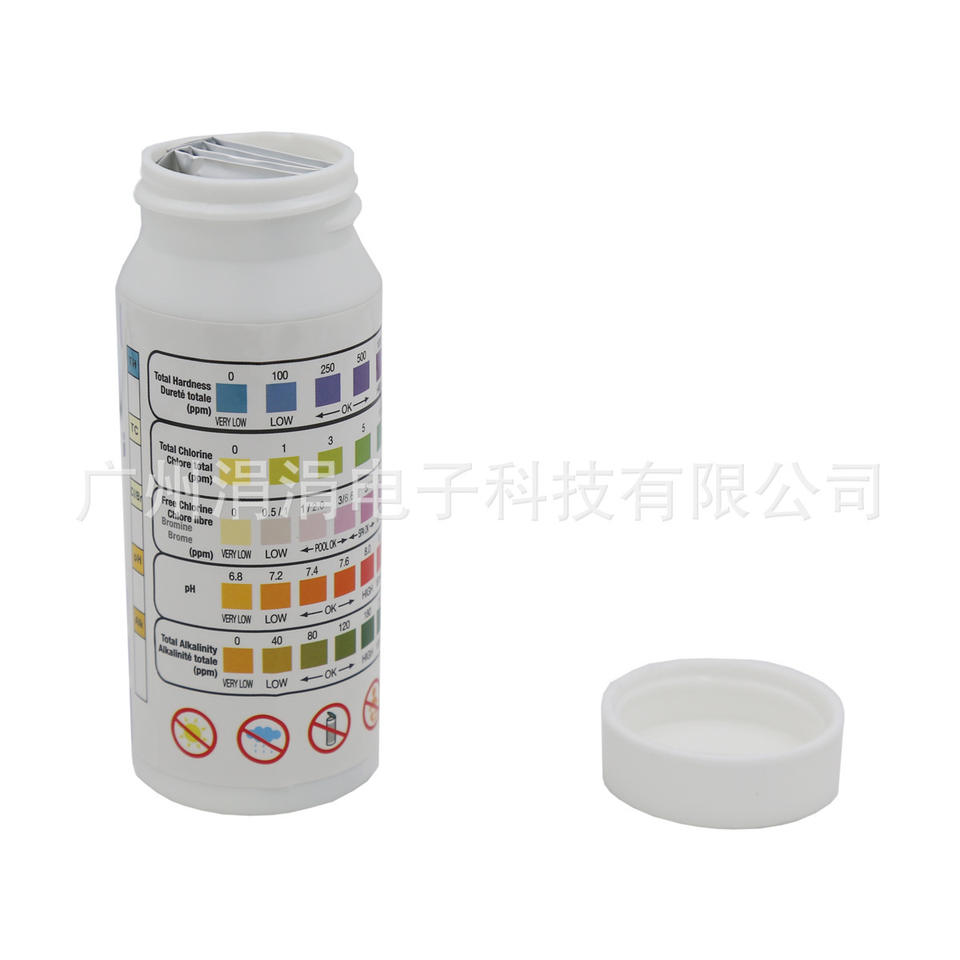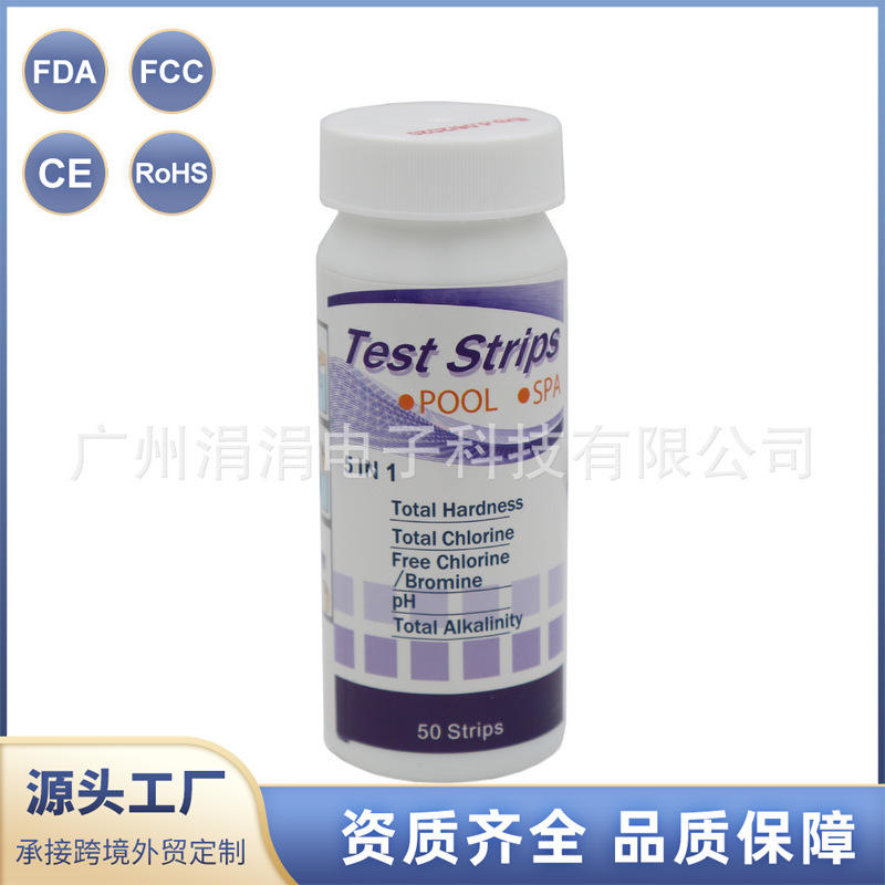 Bandelettes de test 5 en 1 pour piscine et spa : dureté totale, chlore, pH, alcalinité - 50 bandelettes