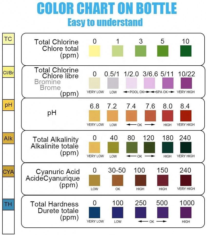 Bandelettes de test 6 en 1 PH Chlore Chlore libre Alcalinité totale Acide cyanurique Dureté pour piscines Aquarium