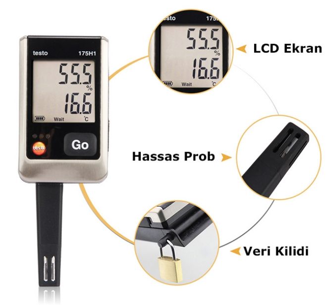 Enregistreur de données de température et d'humidité professionnel Testo 175H1 | Boîtier en acier inoxydable avec capteur externe