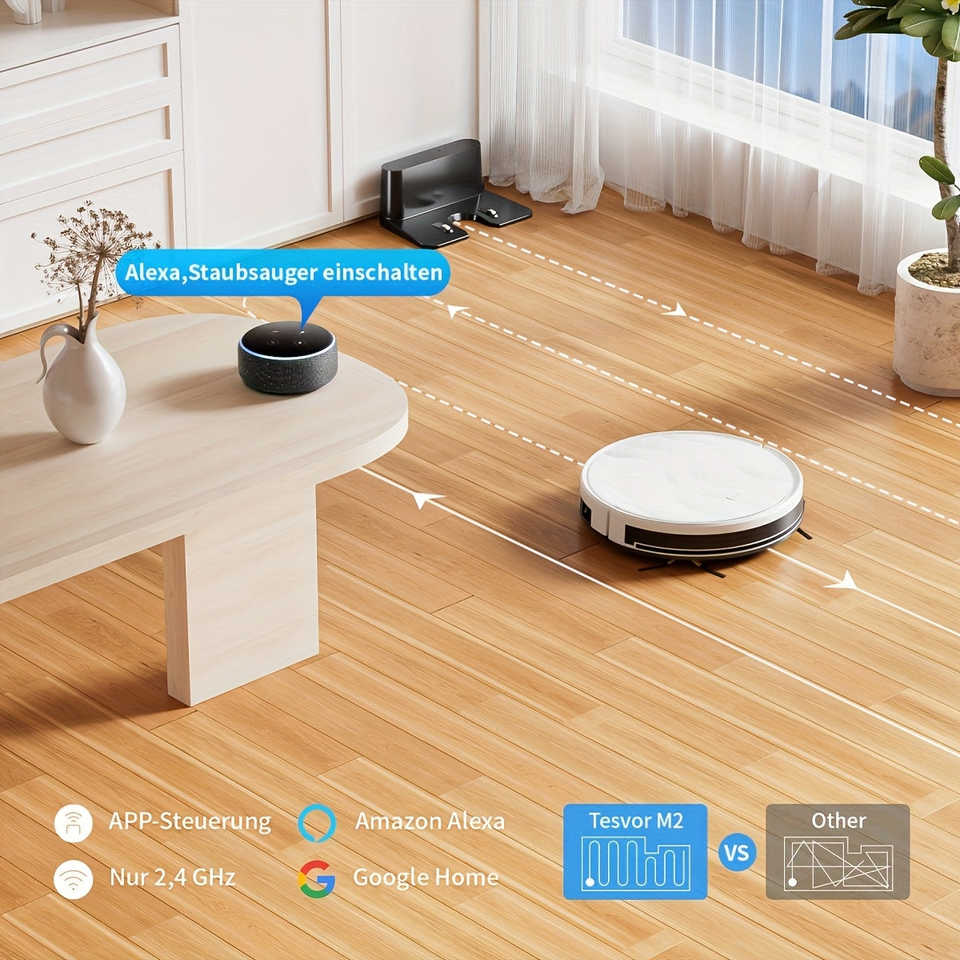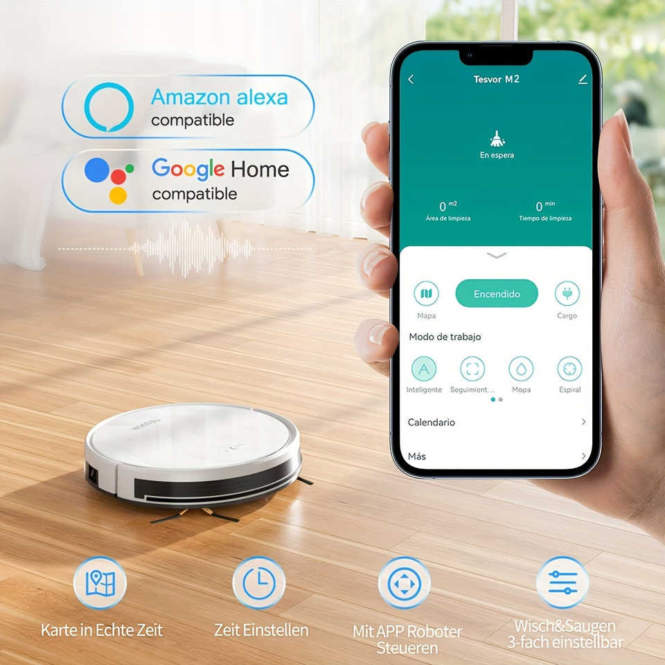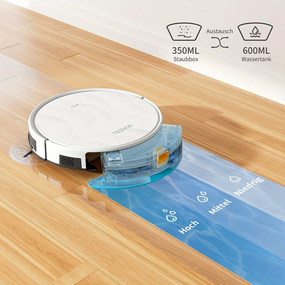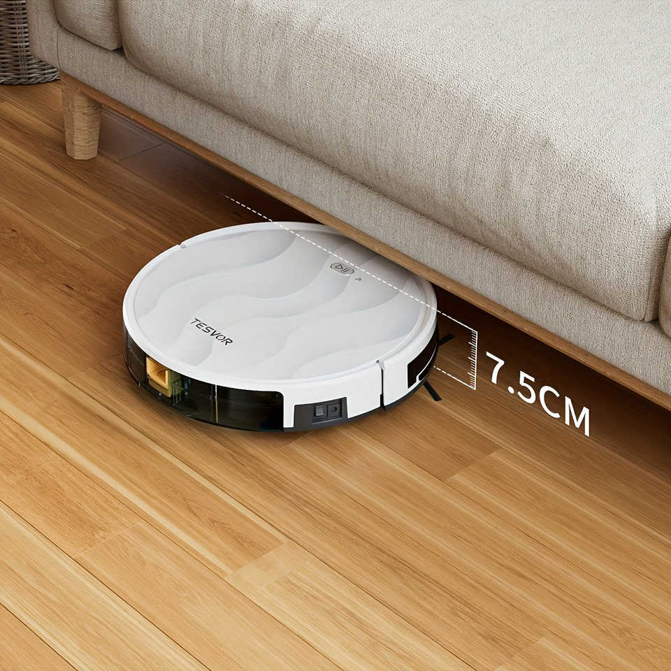 Aspirateur robot intelligent Tesvor, aspiration puissante 6000Pa, navigation LDS, réservoir d'eau de 350 ml pour fonction de lavage, en plastique