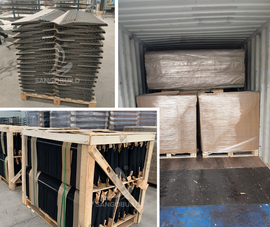Tuile de toiture en métal revêtue de pierre sans lattes, à fixation cachée, Texas, avec installation facile et rapide en DIY, toiture en acier