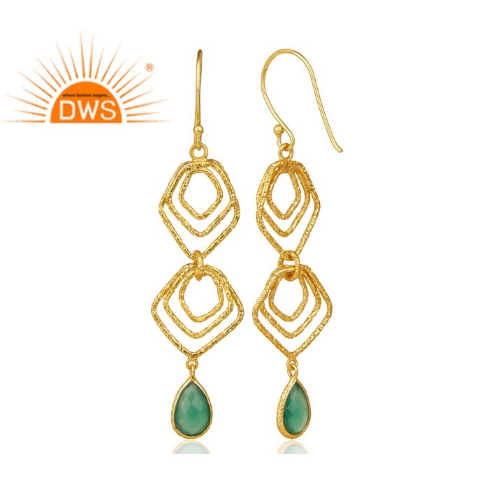 Boucles d'oreilles crochet en argent Sterling plaqué or, bijoux de styliste, vente en gros, en Onyx vert, pierres précieuses