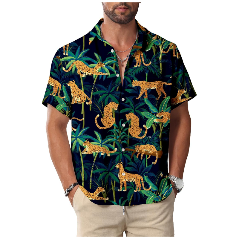 Texture chemises à manches courtes boutonné hommes chemises décontracté élégant chemise hommes hawaïen bouton à manches courtes plage été