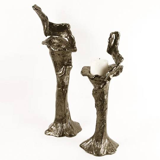 Bougeoirs en forme d'arbre en bronze texturé Décor unique d'ensemble organique