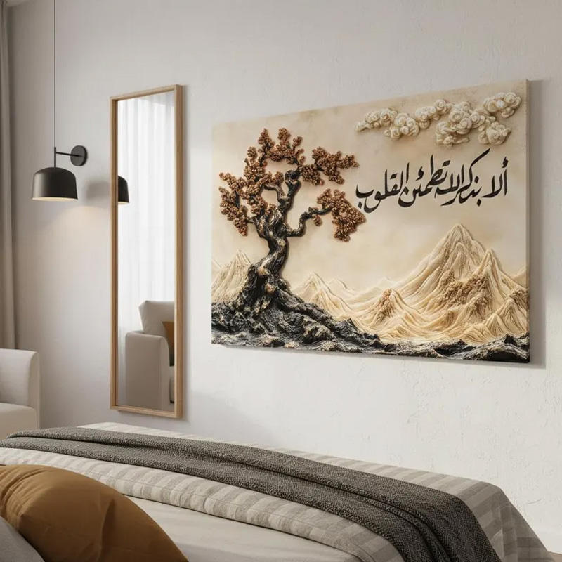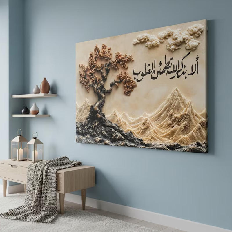 Art mural islamique texturé, calligraphie arabe sur toile, peinture décorative, décoration intérieure, hôtels, fait main