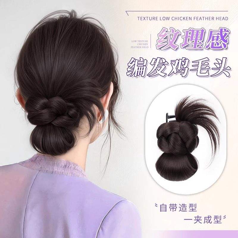 Textured Low Bun Wig With Hair Clip Hand Knitted Synthetic Hairpiece For Women Natural Look Any Face Shape