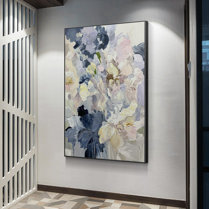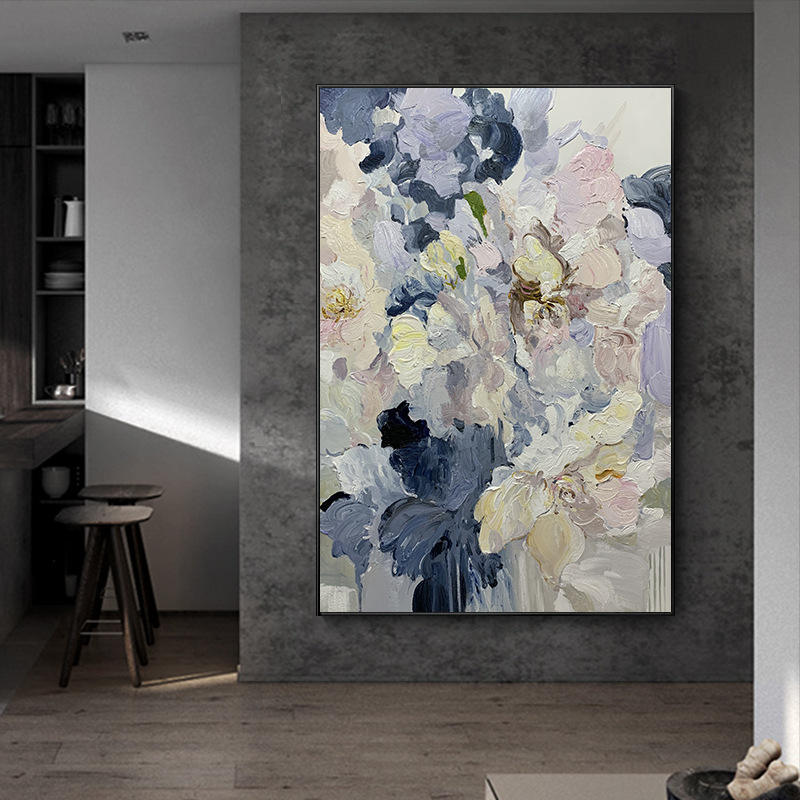 Bouquet de fleurs murales texturées, peinture murale artisanale, grande œuvre d'art murale, peinture à l'huile pour salon