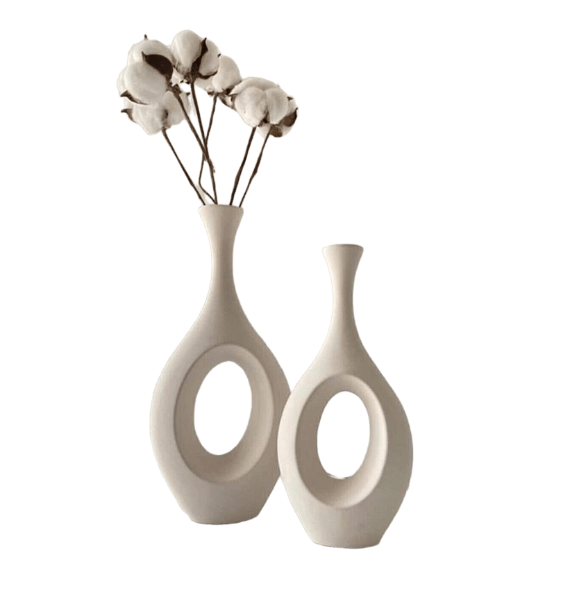 Vase décoratif en forme de tronc d'arbre blanc texturé avec accent artistique en métal et design organique pour une maison moderne de luxe
