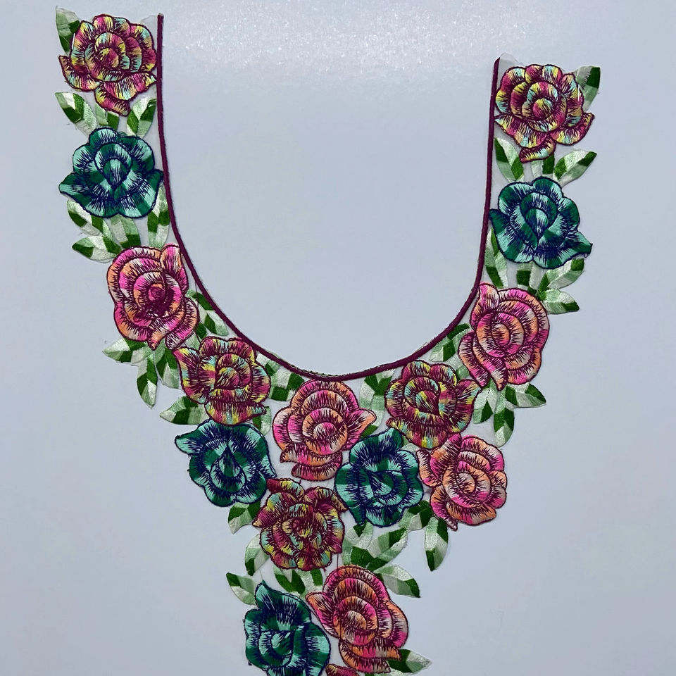 Textured neck collar patch with net base and artistic embroidery with sequin work for Indian ethnic blouse gown kurti