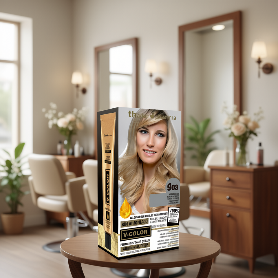 Encre de tatouage cosmétique permanente bio Thader Pharma V-Color 703 Blond moyen naturel doré sans ammoniaque, émulsion liquide