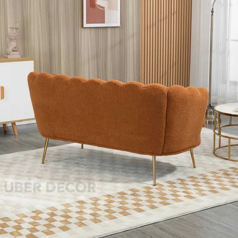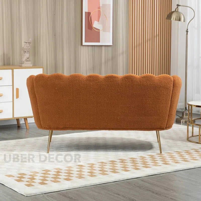 Thalia 59\" Loveseat-Butterfly Style Tufted Back 2-Seater Sofa with Golden Steel Legs Upholstered Living Room Furniture