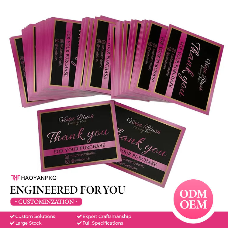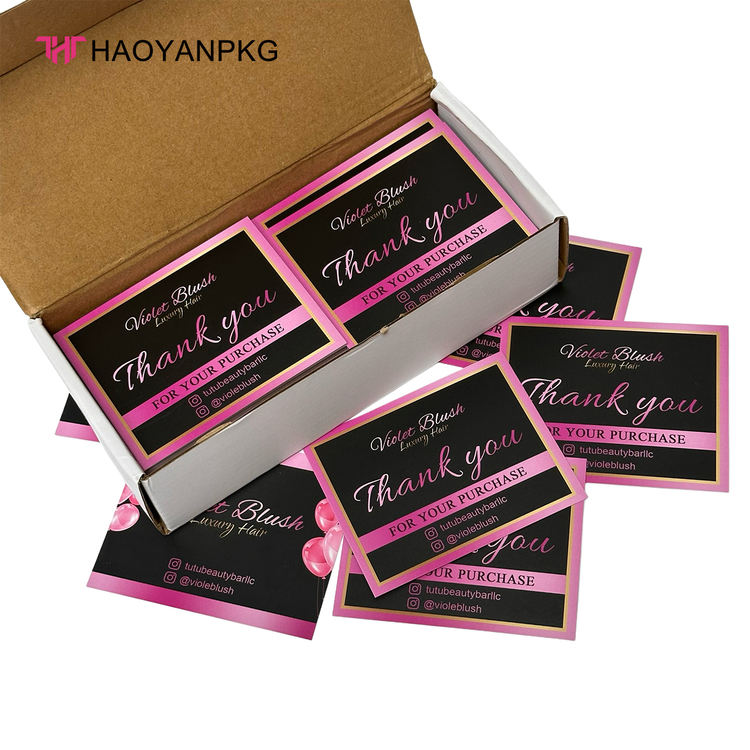 Carte de Remerciement Personnalisée pour Emballage d'Extensions Capillaires avec Logo Privé – Emballage Cadeau en Papier pour Entreprise de Coiffure
