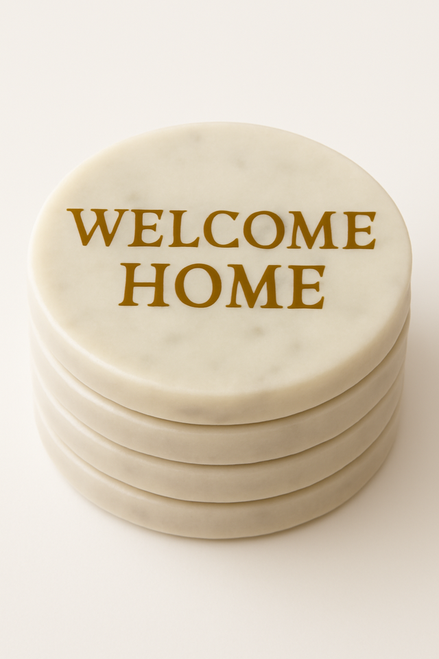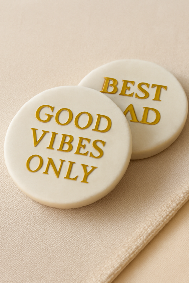 Sous-verre reconnaissant avec texte doré audacieux sur marbre blanc Parfait pour les cadeaux et la décoration intérieure élégante