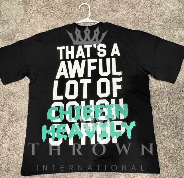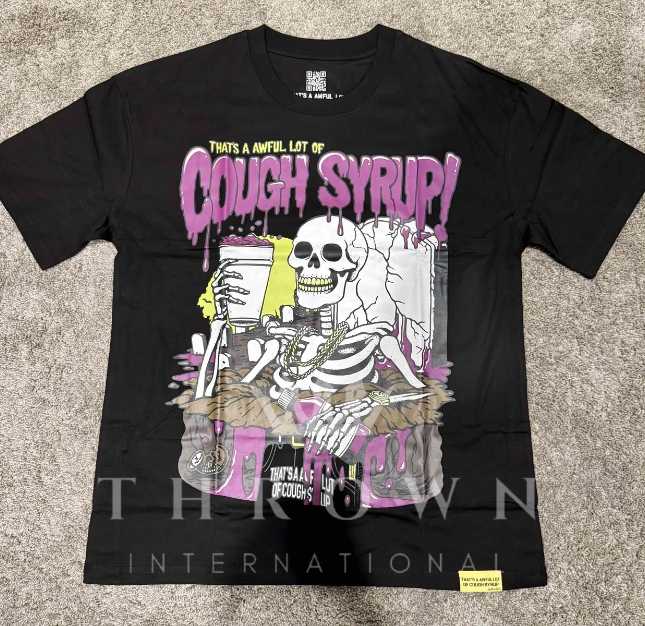 T-shirt personnalisé pour homme coupe oversize avec impression sérigraphiée 'That's AWFUL LOT COUGH SYRUP 1:1' motif crâne, 100% coton peigné, écologique, OEM, noir