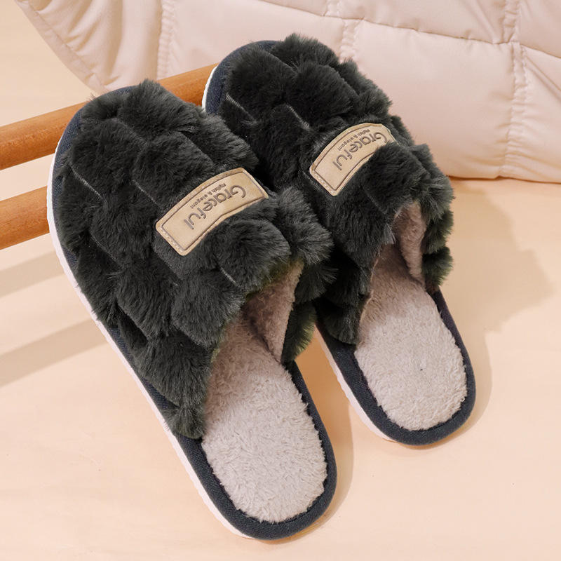 2026 New Autumn Winter Thick-Soled Double-Layer Wool Cotton Genuine Leather Suede Slippers-Fashionable Water Resistant Unisex