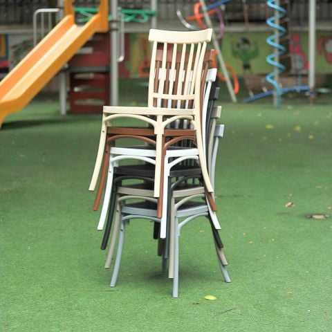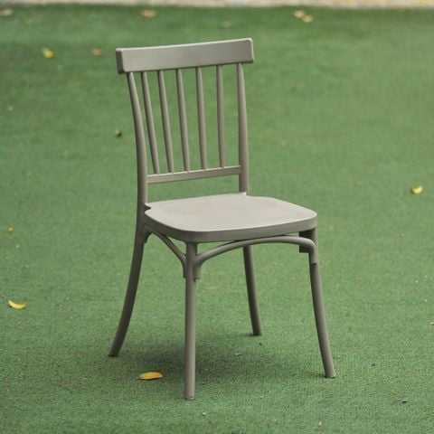 Chaise de jardin traditionnelle en plastique moulé gris cendré à dossier rayé – Une touche moderne pour un style contemporain