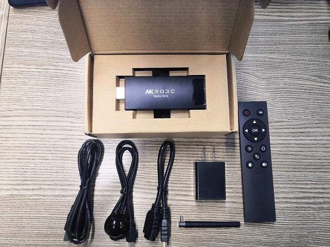 Le bâton de télévision android emballé dans une boîte-cadeau avec un ensemble complet: