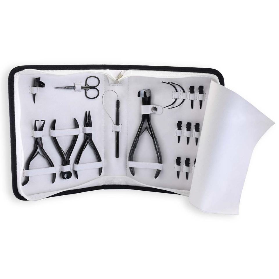 Le meilleur kit d'outils pour les extensions de cheveux comprenant un dissolvant de microbilles et un peigne à aiguilles de type C.