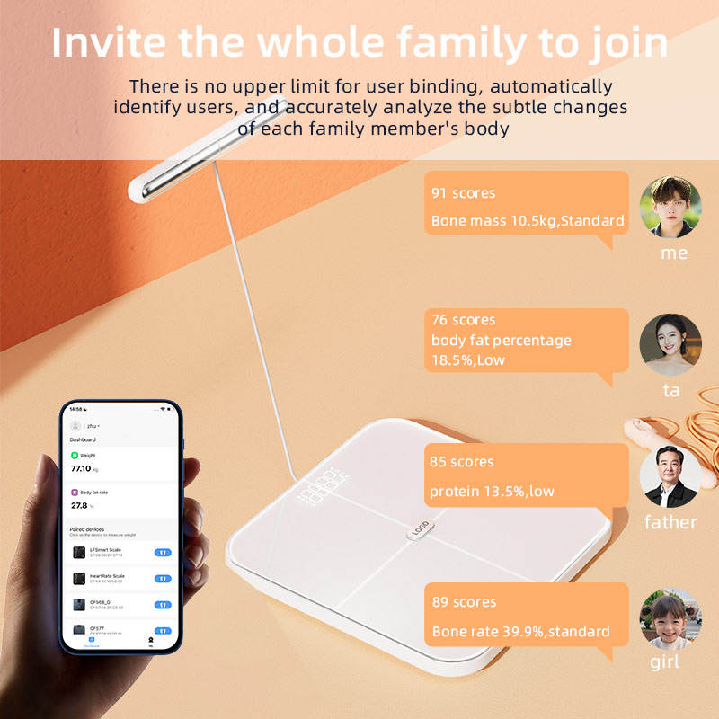 Function:Weight Measuring, Fat Measuring, Water Content Measuring, Body Fat and Water Content Testing, Calorie Measuring, Wi-Fi, Bluetooth