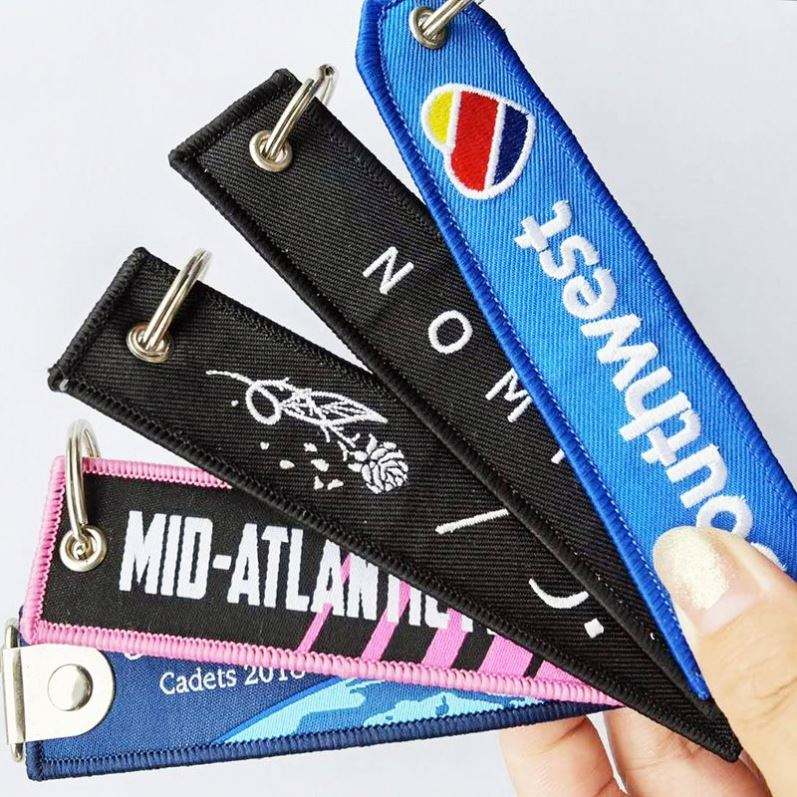 Porte-clés d'avion en tissu brodé personnalisé avec logo de marque, le moins cher, pour avant le vol