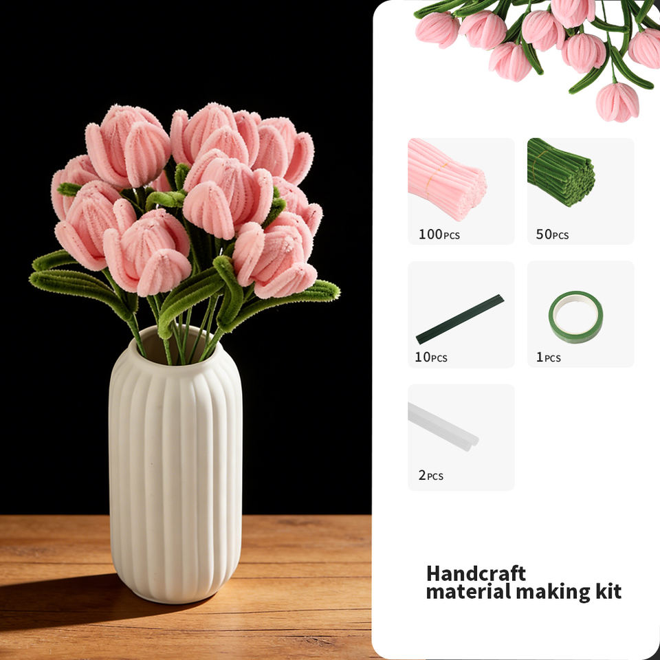 La collection classique de tulipes - Ensemble de bouquets DIY de 8 mm avec 150 cure-pipes et accessoires floraux complets, présenté dans un coffret cadeau