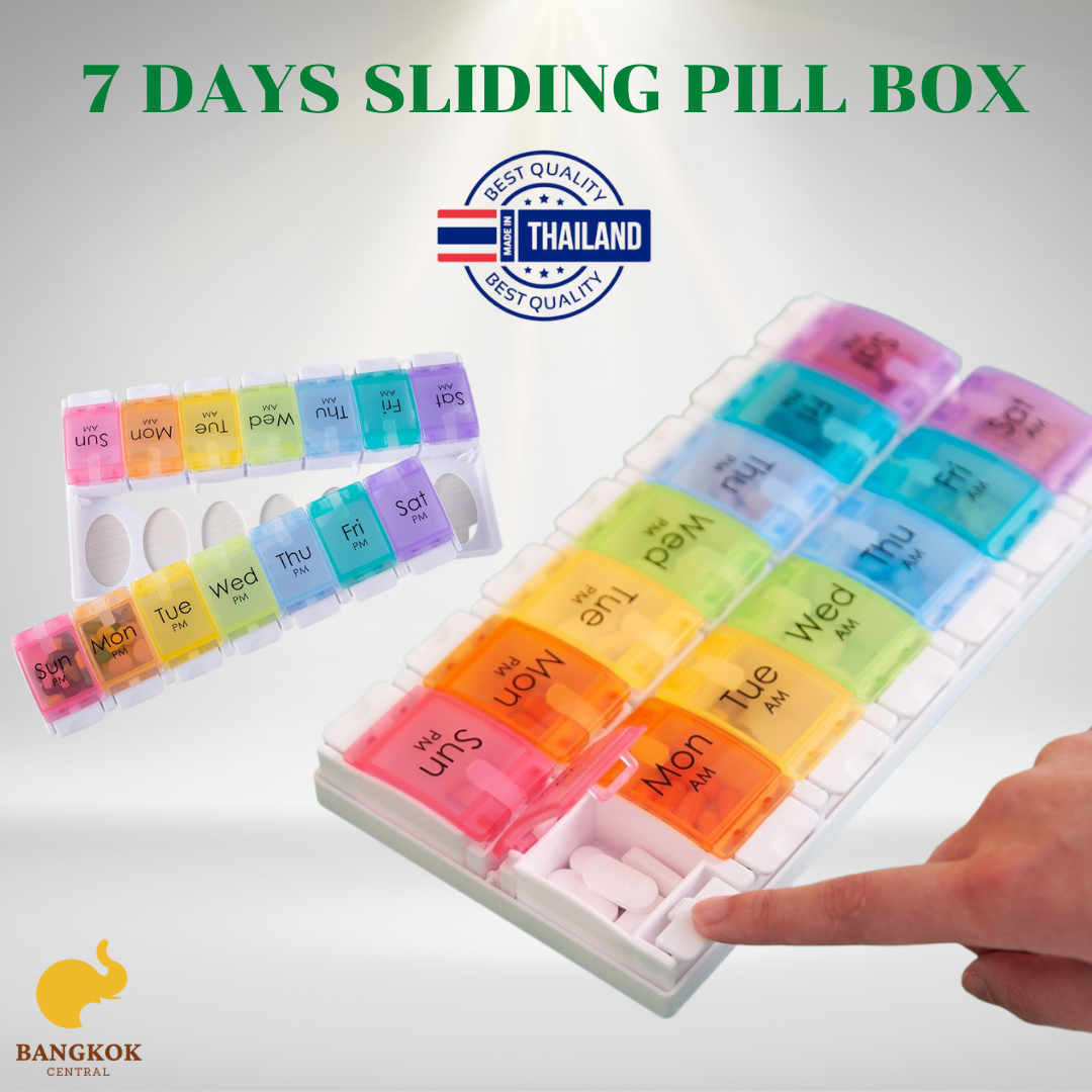 La cartouche de médicaments a 14 compartiments boîte de pilules de voyage hebdomadaire 7 jours pilulier organisateur de médicaments pour vitamines de thaïlande