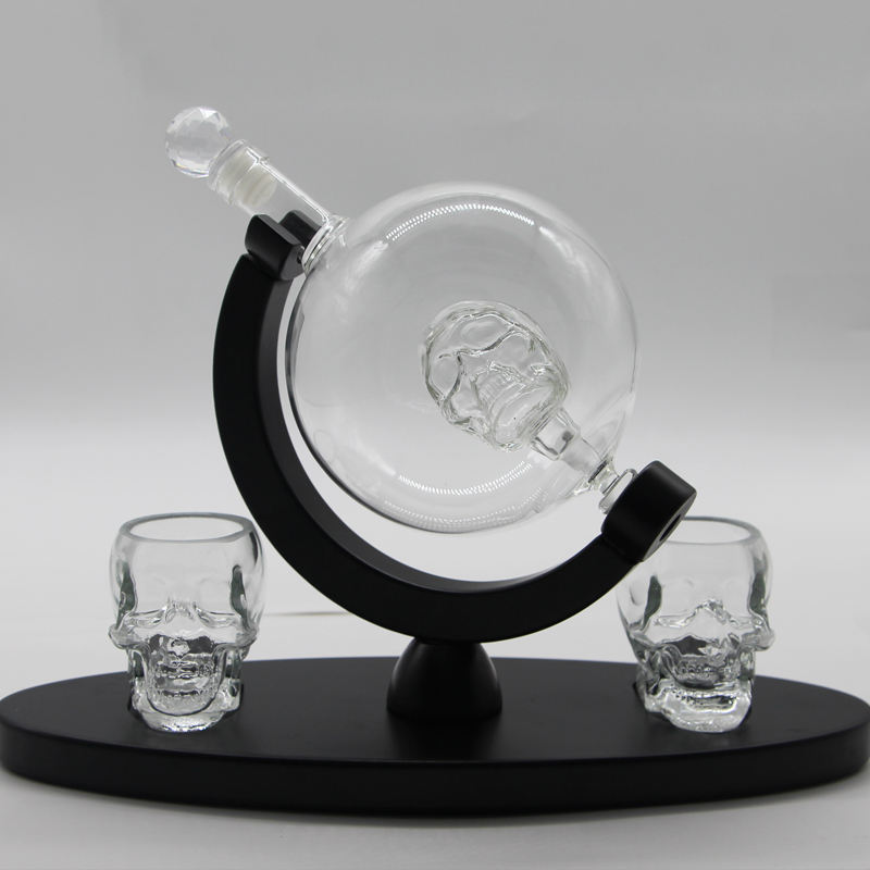 L'usine vend des carafes à whisky en verre transparent classiques de 850 ml, soufflées à la main, avec logo personnalisable, design de crâne, pour une utilisation en fête