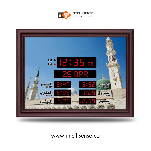 L'horloge islamique numérique de la série Guardian avec des fonctions de cybersécurité, des signaux Azan cryptés et des données de temps de prière sécurisées