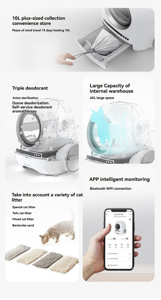Contrôle des odeurs, Confortable, Facile à nettoyer, Écologique, Large capacity, Nettoyage automatique, Durable