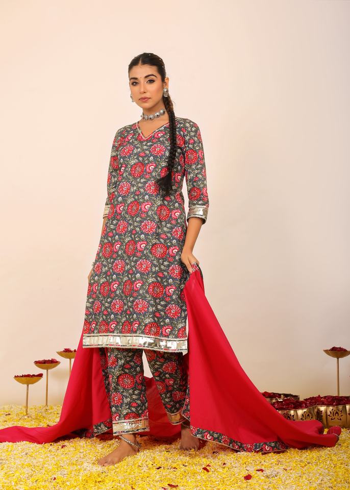Nom du produit:Ensemble Kurta multicolore imprimé floral avec pantalon Dupatta