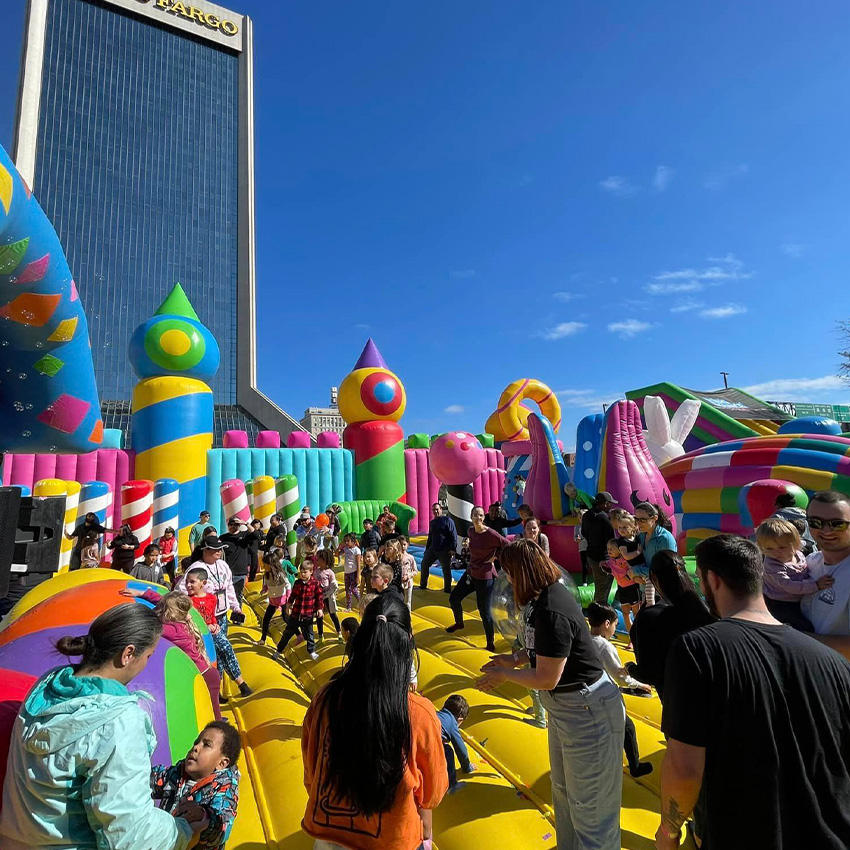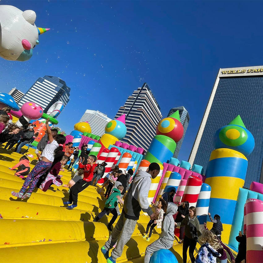 La plus grande maison de rebond gonflable de l'Amérique remplie d'action pour tous les âges