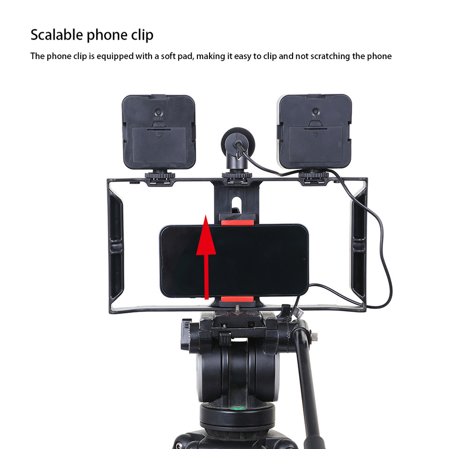 Le dernier matériau ABS LED lumière de remplissage avec microphone Portable Anti-secousse support de photographie de téléphone portable