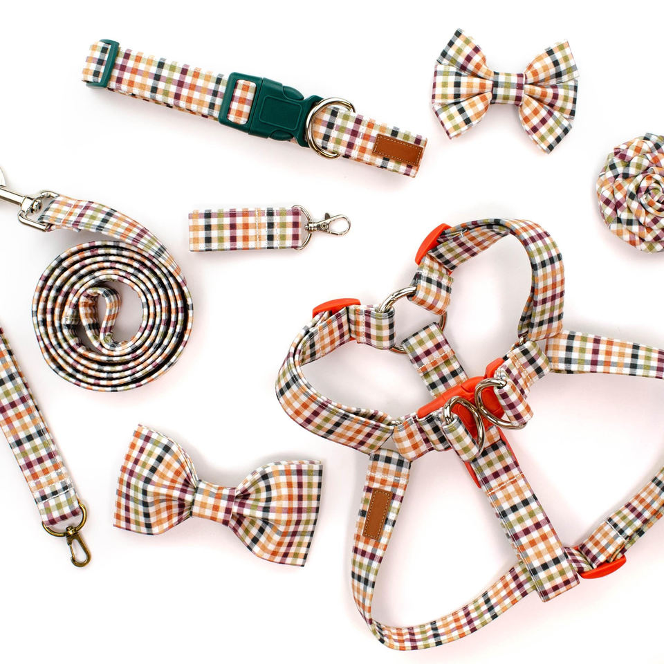 Vente en gros Collier de chien en polyester à carreaux tartan Boucle réglable à dégagement rapide Logo personnalisé Usine OEM ODM