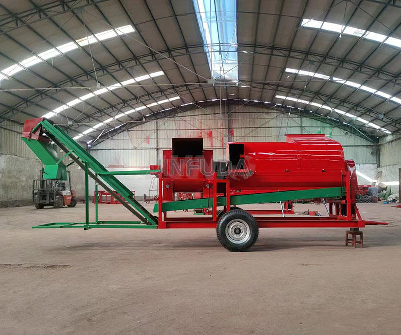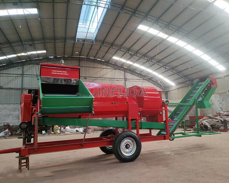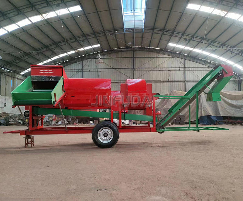 La machine déplace directement les plants d'arachides dans le champ et les envoie vers le mécanisme de cueillette des fruits à l'intérieur.
