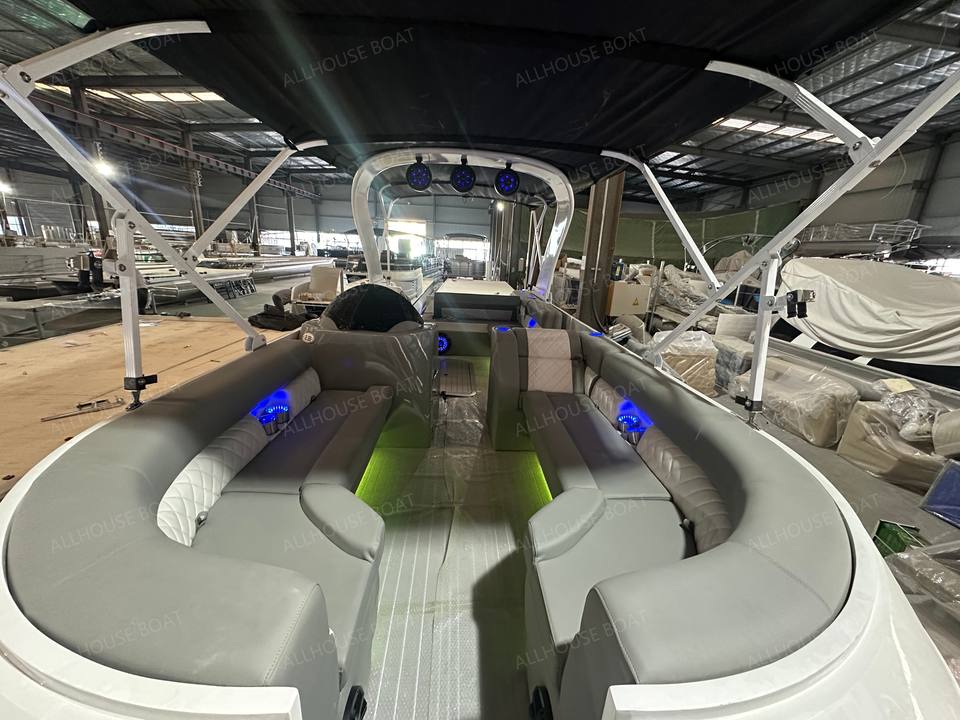 Le bateau ponton flottant en aluminium le plus populaire avec moteur hors-bord LED pour les loisirs et le divertissement