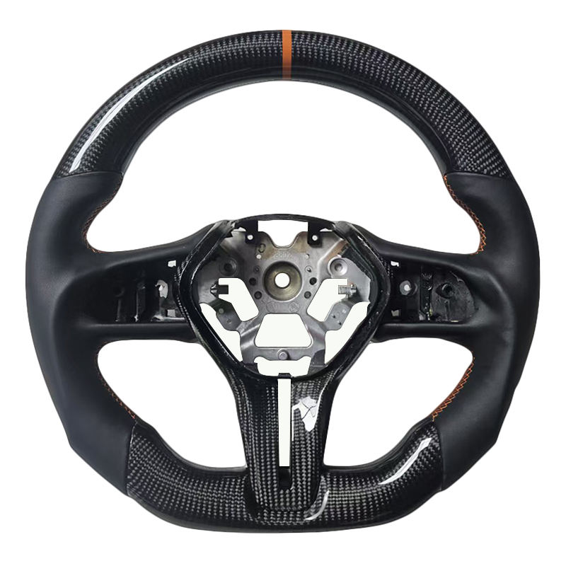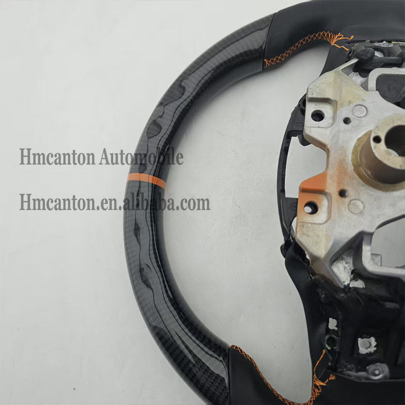 Volant de direction en cuir lisse en fibre de carbone le plus populaire avec surpiqûres orange pour Infiniti Q50