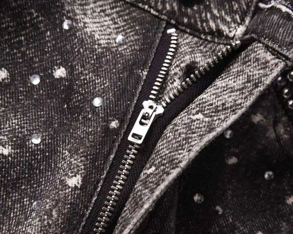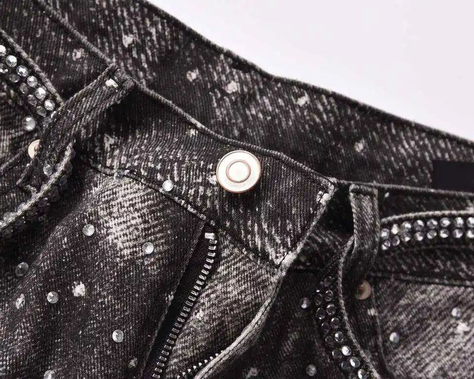 La collection festive la plus populaire, mettant en vedette des pierres argentées à fort contraste sur ces jeans en denim noir ornés de strass.